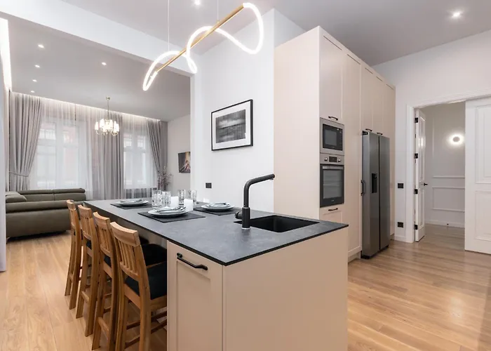В апартаментах гости могут пользоваться оснащённой всем необходимым кухней, где предусмотрен электрочайник, духовка и кухонная утварь. Апартаменты обеспечивают гостям удобство и отдых, предлагая мини-бар. Ресторан Steiku Haoss угощает блюдами европейской кухни и находится в 5 минутах ходьбы. В нескольких метрах от апартаментов находится автобусная остановка Inzenieru iela. Кроме того, гостям апартаментов предоставляется доступ к спа-салону.